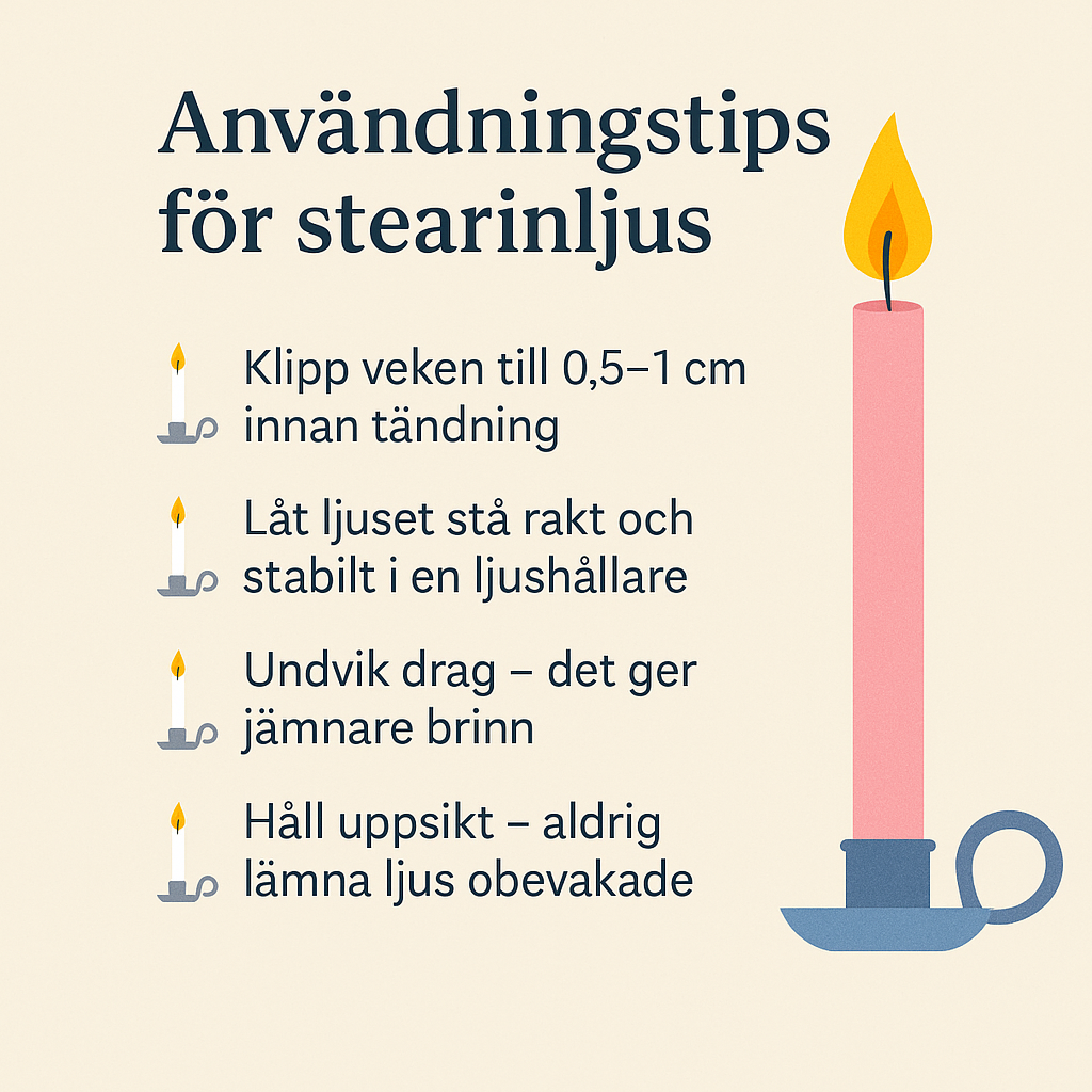 🕯️ Klipp veken till 0,5–1 cm innan tändning