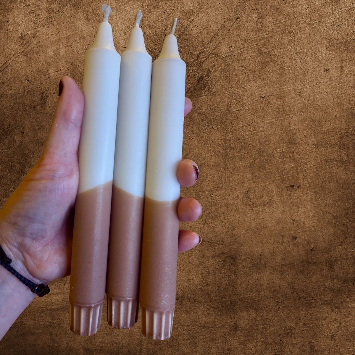 ★★★★★Autumn Cocoa Stearin Candle – Handcrafted Beige & Brown Taper – Cozy Fall Decor – Made in Sweden