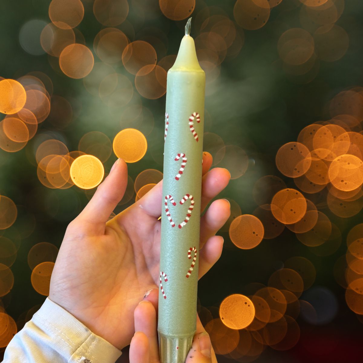 Polkadröm är ett stämningsfullt julljus – handdoppat och handmålat i vårt ljusmakeri i Gränna. Med små polkagrisar och hjärtan målade för hand är varje ljus ett unikt konstverk som sprider både värme och nostalgi.