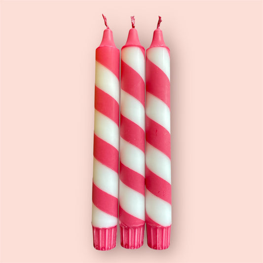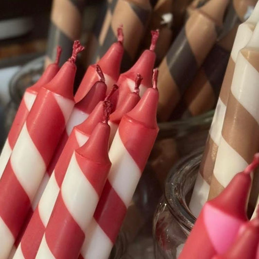 Polkagris-stearinljus – handgjorda rödvita stearinljus i 100 % stearin, tillverkade i Gränna
