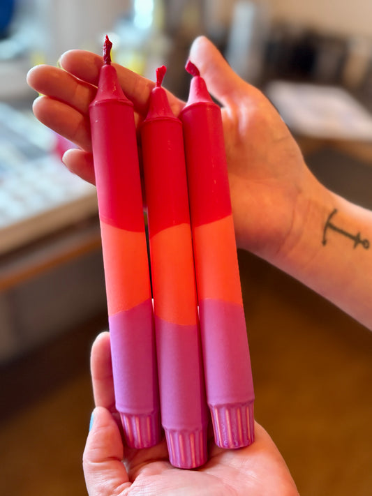 Heatwave-stearinljus – handgjorda färgblocksljus i rött, orange och lila | 100 % stearin